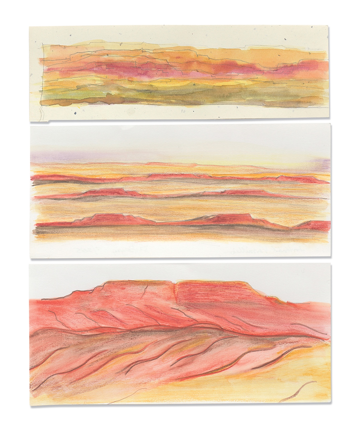 DB: Not only do I have my Tsélani landscape embedded in my mind, but I frequently photograph the surrounding textures at various times of the day to capture different lighting as it reflects on the terrain. I use these photos to evoke not only two dimensions, but also three dimensions to develop the scenes on my loom.